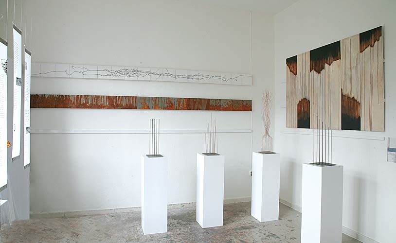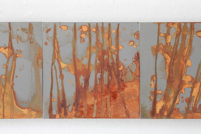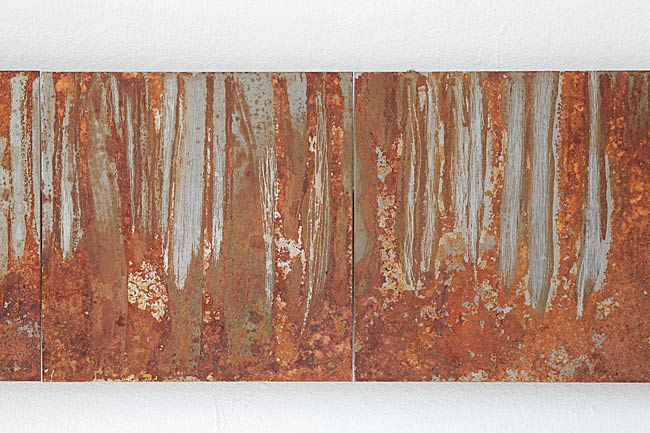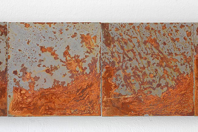 Detail rostende LinieEisenblechplatten je 20 x 20 cm
