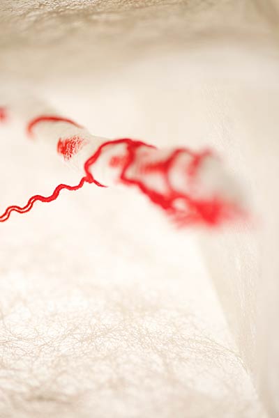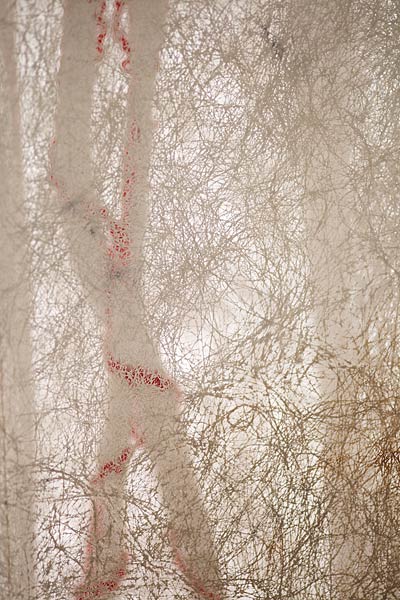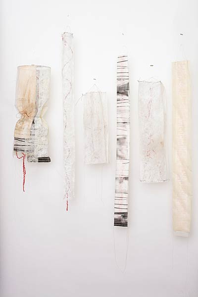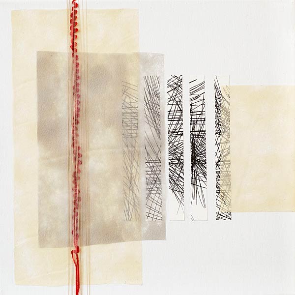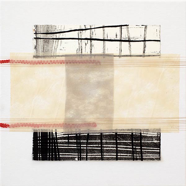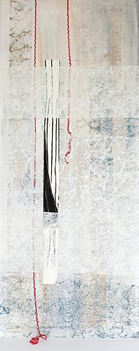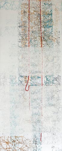 Liniencollage auf Leinwand, Acrylfarbe, Wolle, Vlies 120 cm x 50 cm