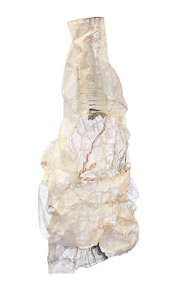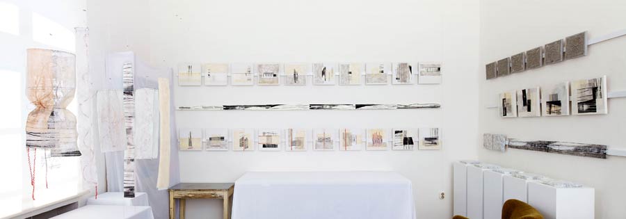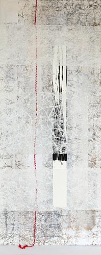 Liniencollage auf Leinwand, Acrylfarbe, Wolle, Vlies 120 cm x 50 cm